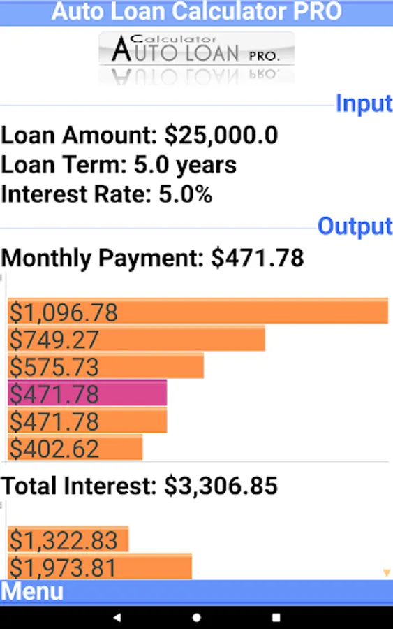 Auto Laon Calculator PRO will help you calculate your monthly auto loan payments or the total purchase price of your car.