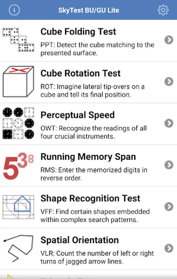 SkyTest-Lite app is meant a mobile complement to the SkyTest desktop software. It is strongly recommended to use the SkyTest desktop software for a truely comprehensive screening preparation as it provides a complete set of training modules and didactic auxiliaries like SkyTest Training Assistant, SkyTest Cloud and stat tools.