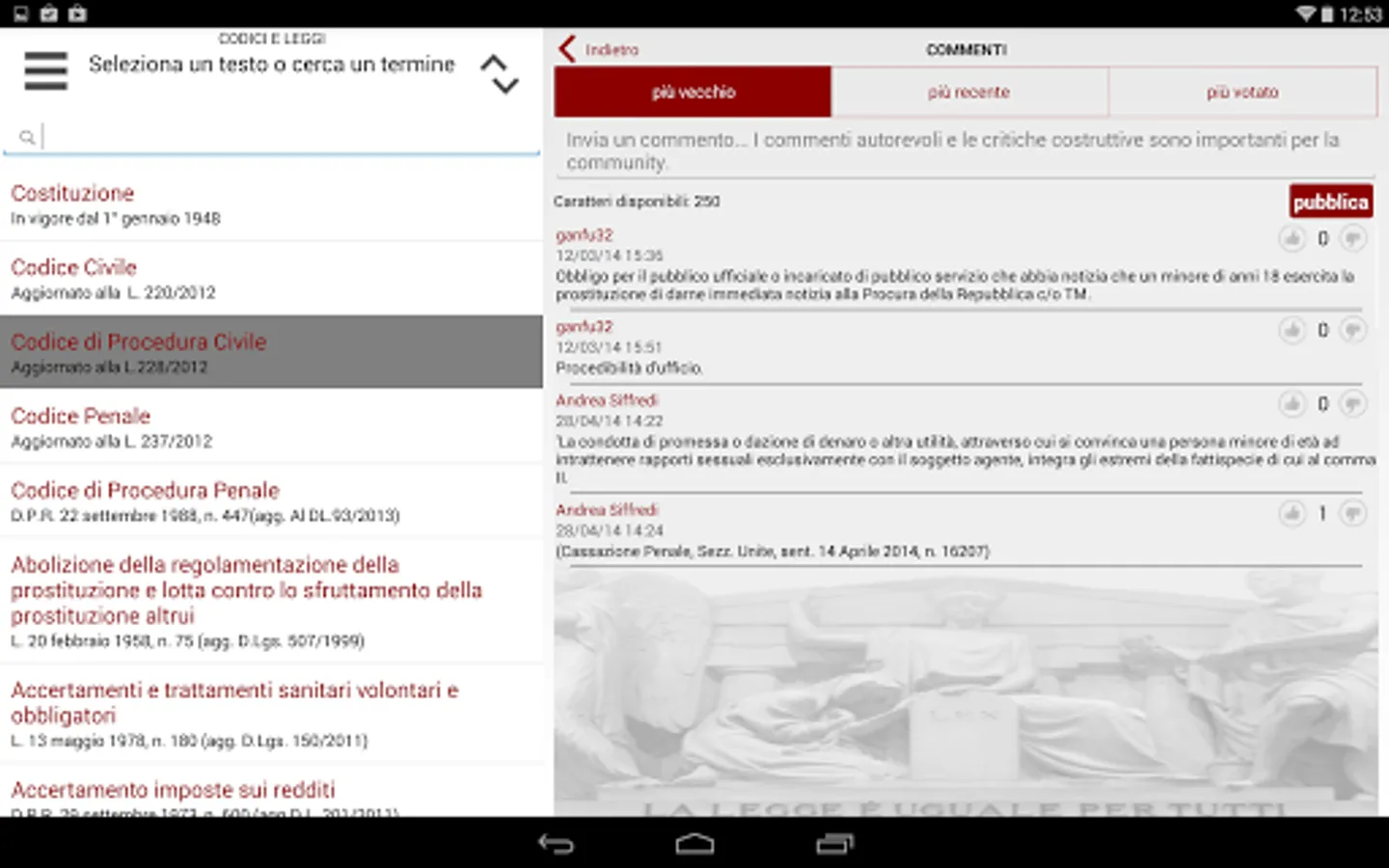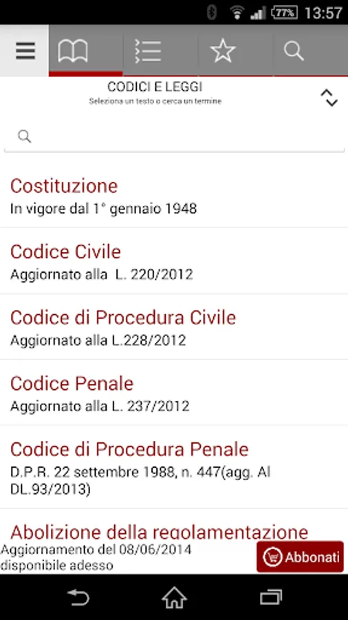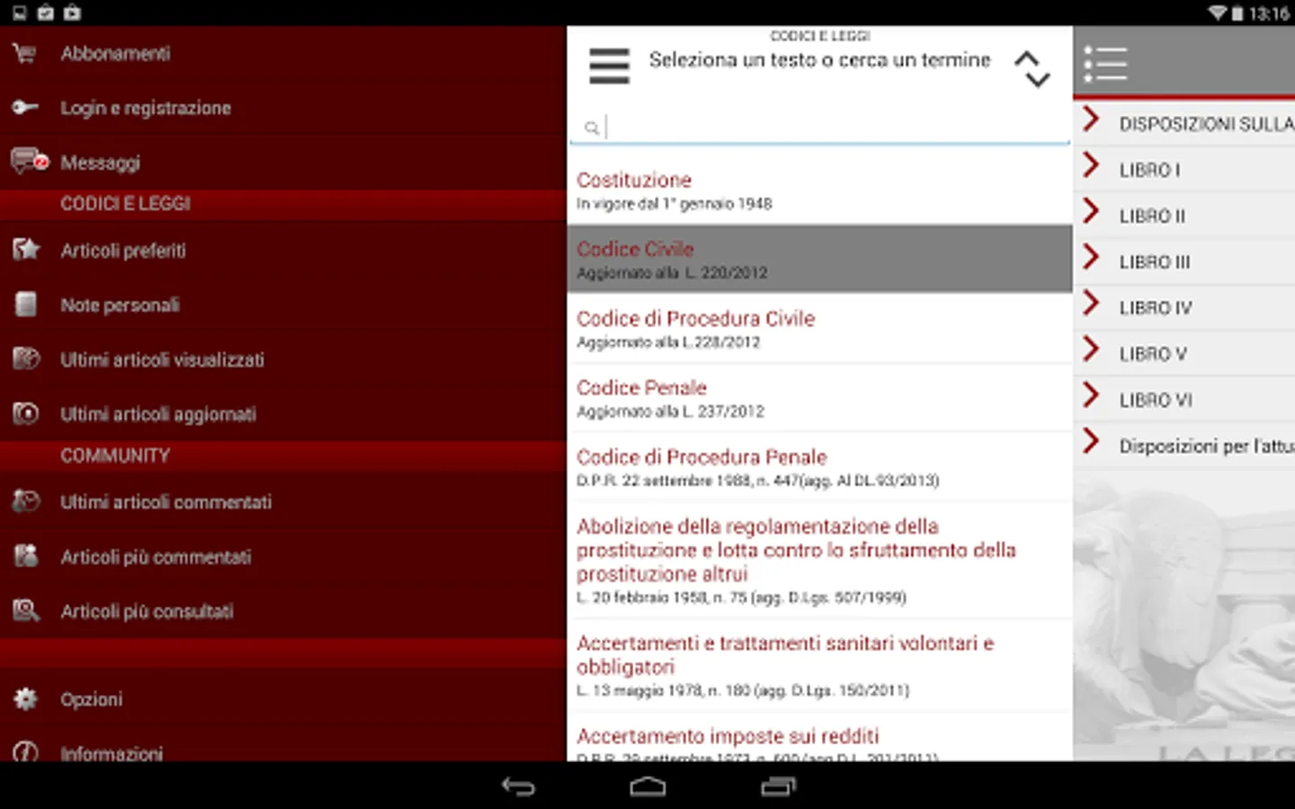 All the Codes and the main Italian laws in a single application; a practical and complete handbook, always updated, specially designed for professionals and law students.