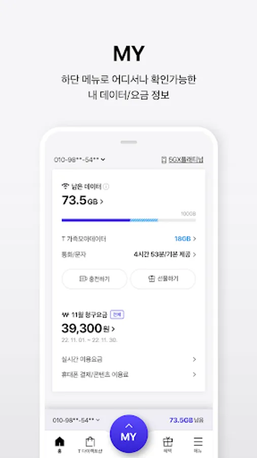 Collect frequently sought real-time balance, billing rates, and subscription information at a glance through the MY screen that can be checked anywhere.