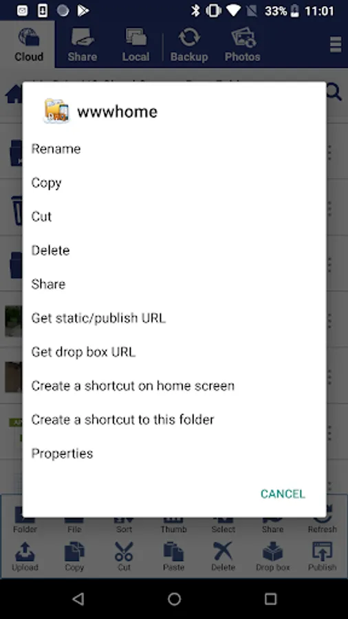 DriveHQ Cloud File Manager can manage both local and cloud files. You can easily navigate to different folders, upload or download files/folders between local and cloud. It supports all standard File Explorer features (such as Copy, Cut, Paste and Delete), and advanced features like synchronizing your photos / folders with the cloud, and sharing files with granular access control.