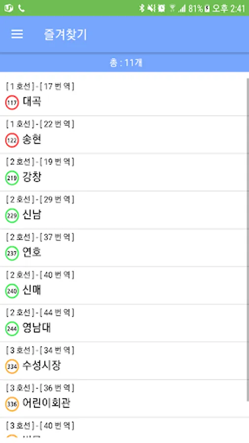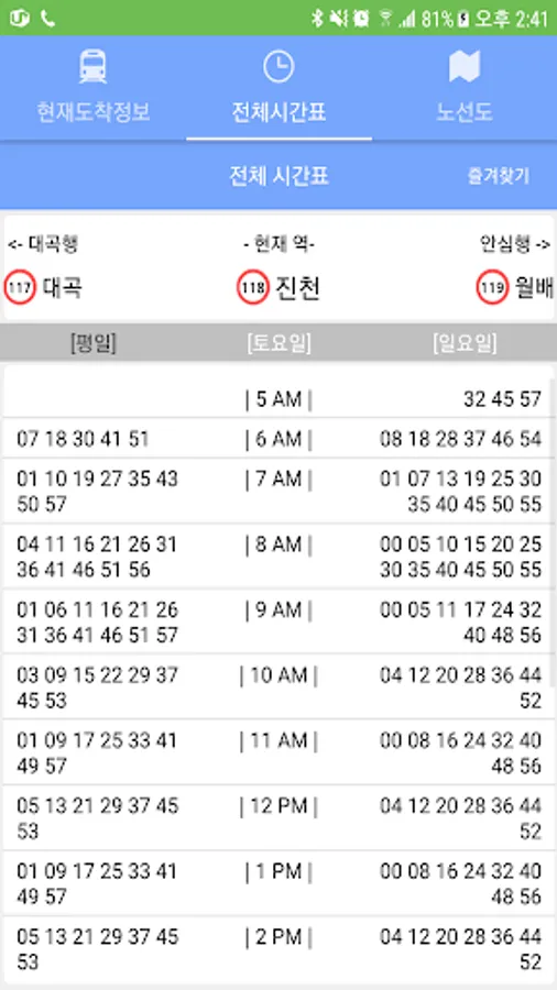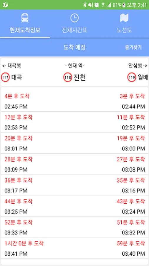 ※ Daegu subway arrival information provides the following functions.