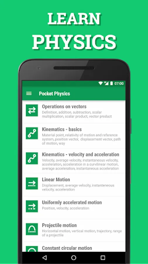 Pocket Physics is the best physics app on Android market. All this features in this app and will make your physics life a lot easier. This educational app provides free physics lessons and homework help from basic physics to complex problems.
