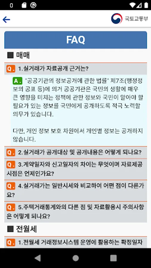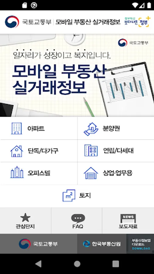 The Ministry of Transportation conducted using smartphones to provide information to help the people what they want apartments actual transaction (sale, jeonwolse) information anytime, anywhere access more quickly and accurately.