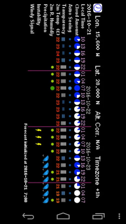 • Shows you a clear sky clock for your current location.