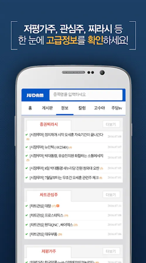 - 찌라시, 저평가주, 차트관심주, 이슈분석, 시황분석 등 전문가들의 고급정보 제공!