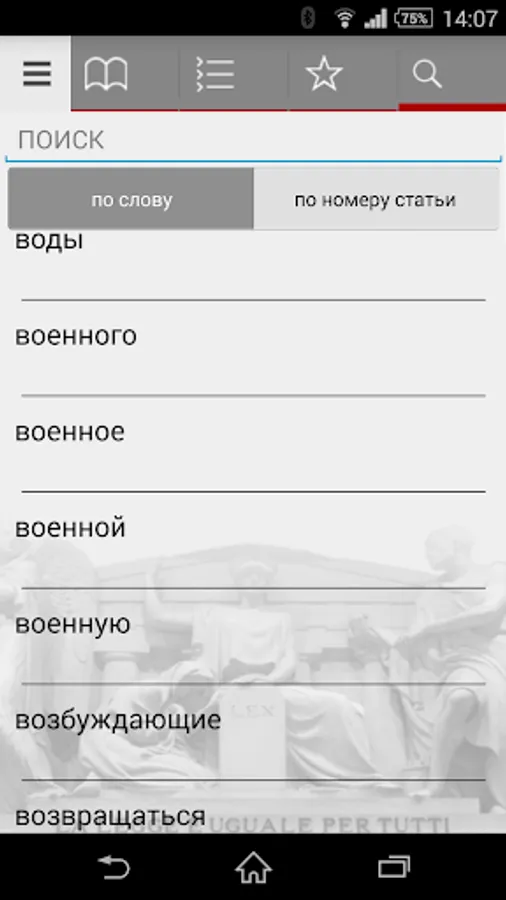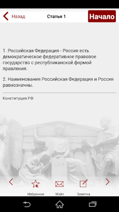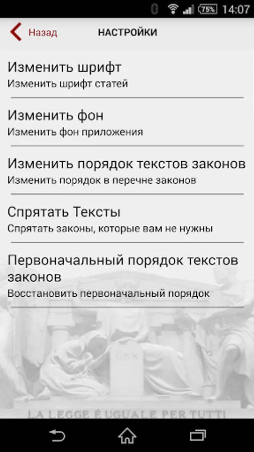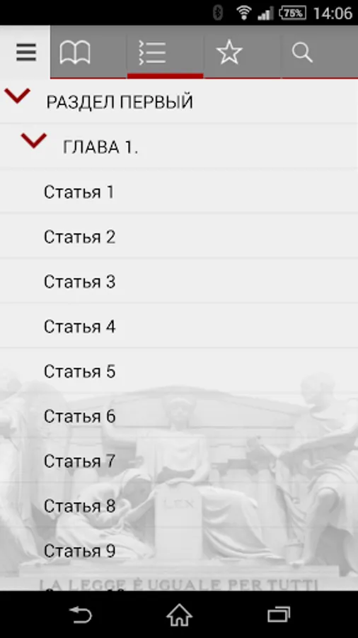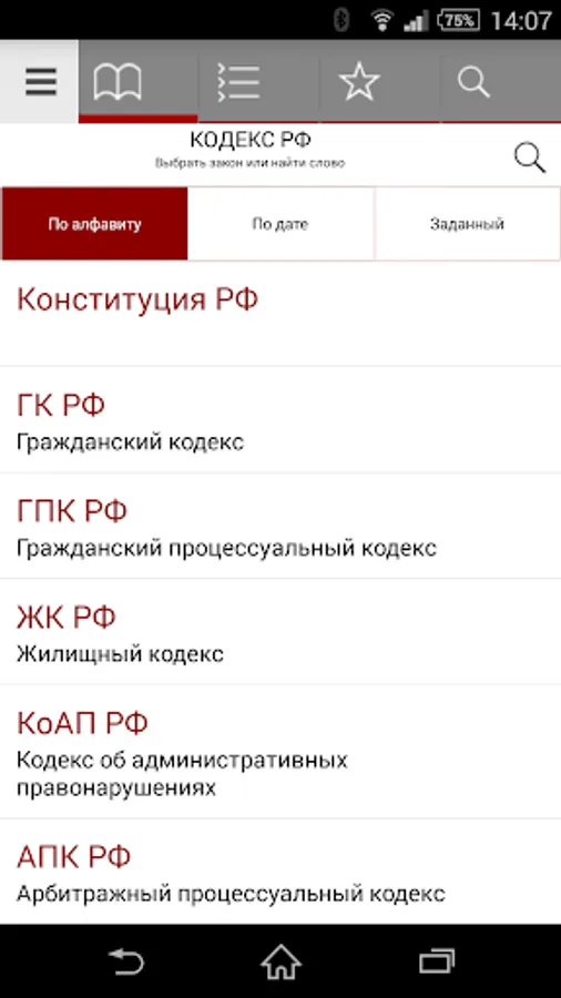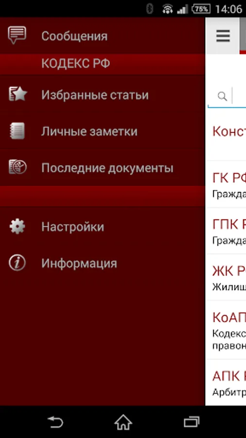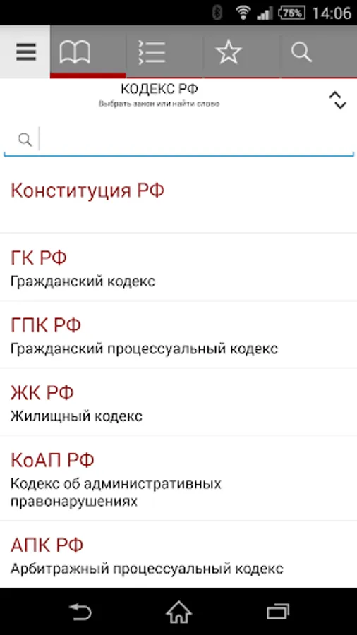 application guide for lawyers, law students and all those who need to have the texts of the main laws of the Russian Federation at hand. This application is very easy to use, it represented more than 98 principal legislative texts (about 12,800 articles).