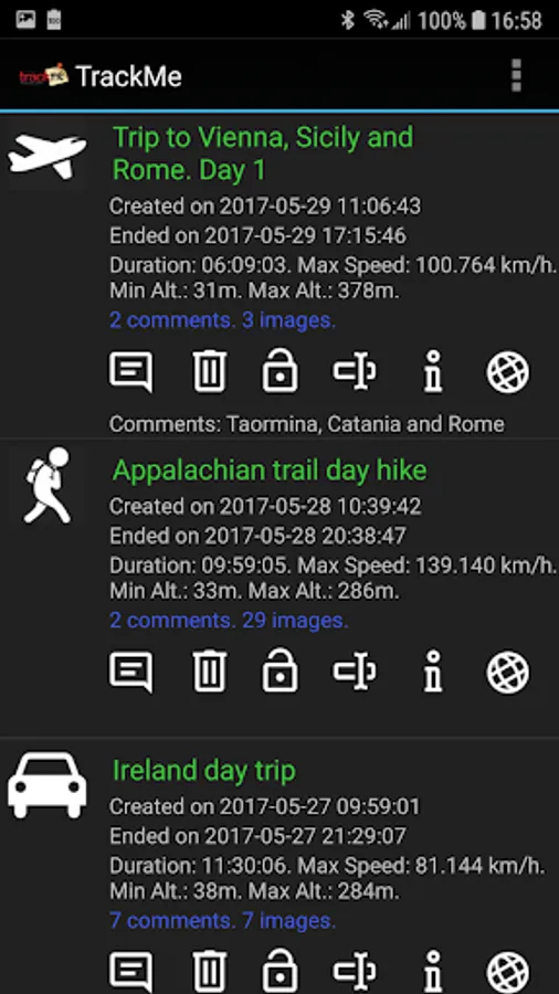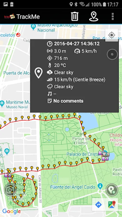 * Automatic image matching. You can match existing photos stored on your phone with any of your routes. TrackMe will try to find the closest match by using the tags stored inside the photos.