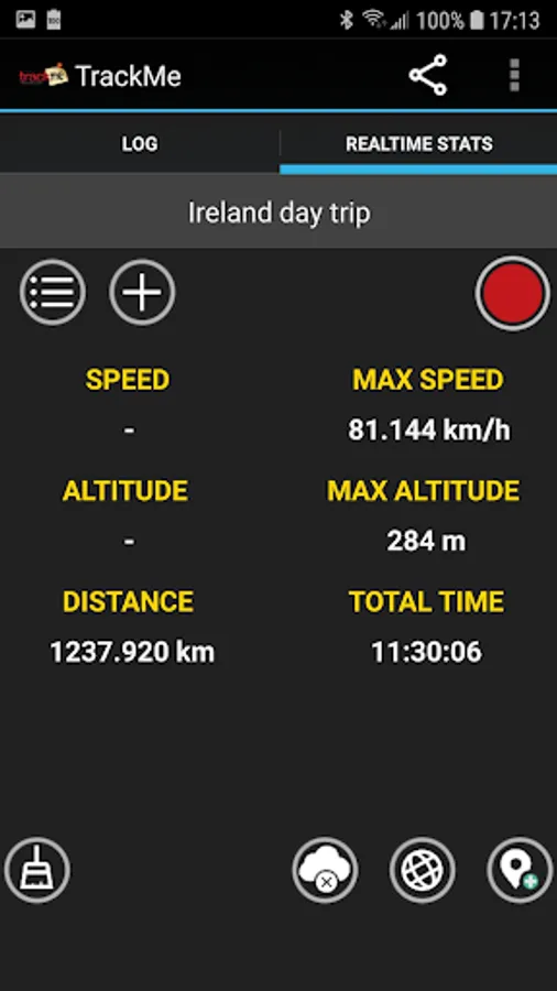 * Live Stats such as speed, maximum speed, average speed, route duration..