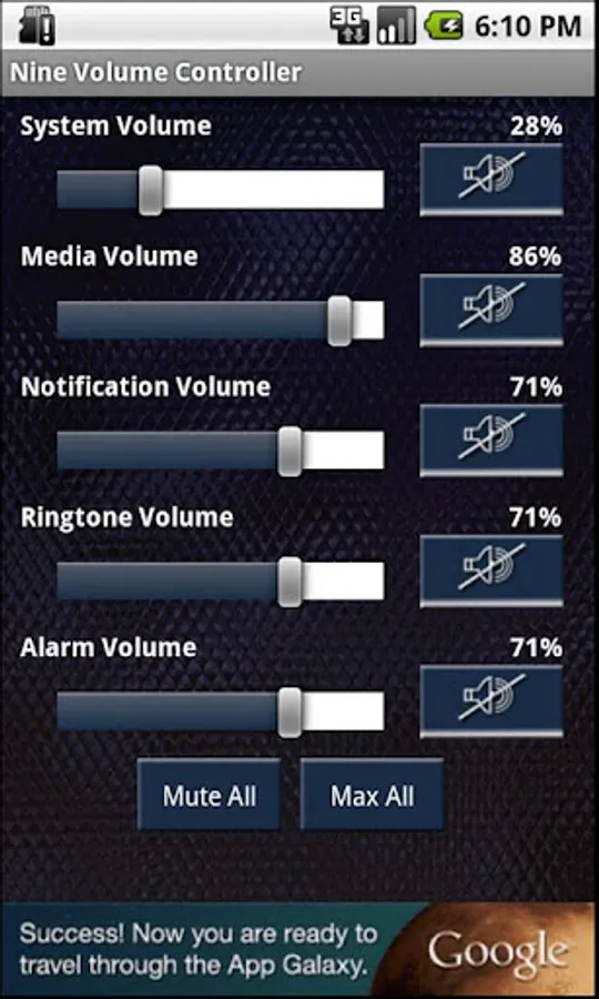 This application allows control the different volumes from your device. You can also use a widget in order to see the volume levels and launch the application quickly doing click on it.