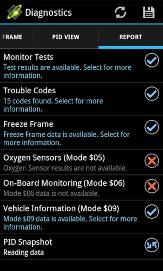 Turn your phone or tablet into a full-fledged diagnostic scan tool: read diagnostic trouble codes, clear the "Check Engine" light, check emissions readiness, estimate fuel economy and much more!