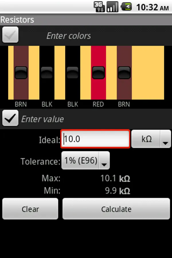 * Resistor calculator automatically determines 3, 4, or 5 band