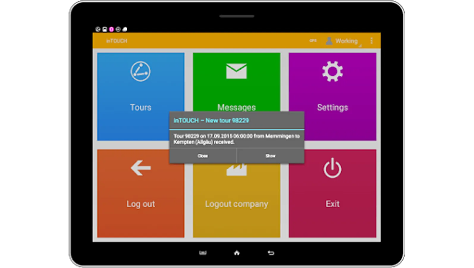 The telematics solution, CarLo® inTOUCH, contains the basic telematics functions such as positioning, message exchange, order management and driving time management.