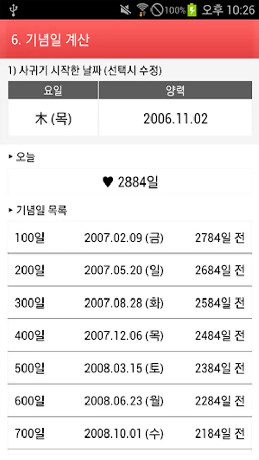 - Shows a list of additional days, including today's days, 100 days, 200 days, and 300 days.