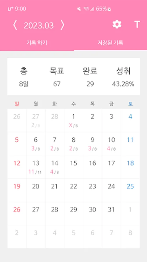 2. You can check your performance for a month at a glance through the calendar