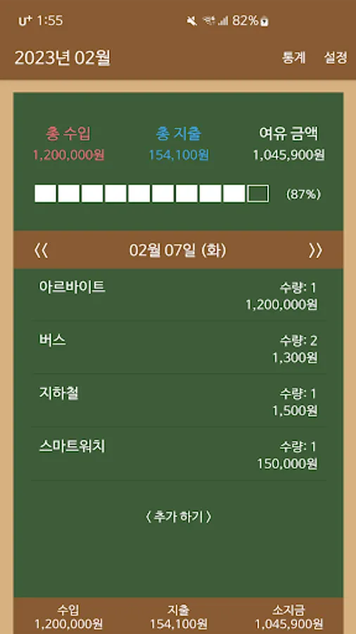 Simply press the 'Add' button on the screen, select the category you want, and enter the desired amount.