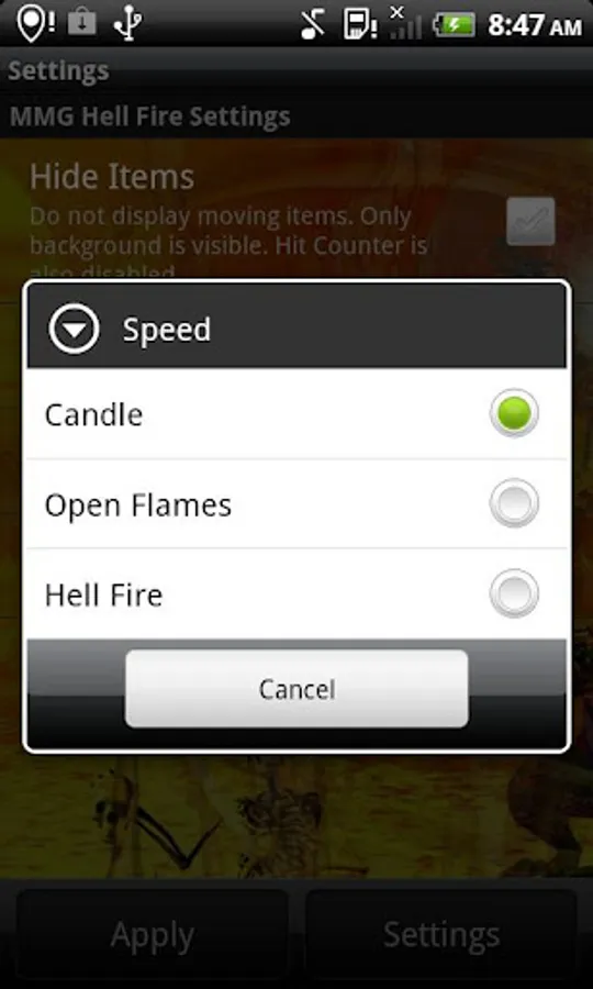 Warm up your finger tips as flames gracefully slide up or down your screen. Let them mesmerize you as they float by or tap them to extinguish and reconfigure the randomization of the conflagration.
