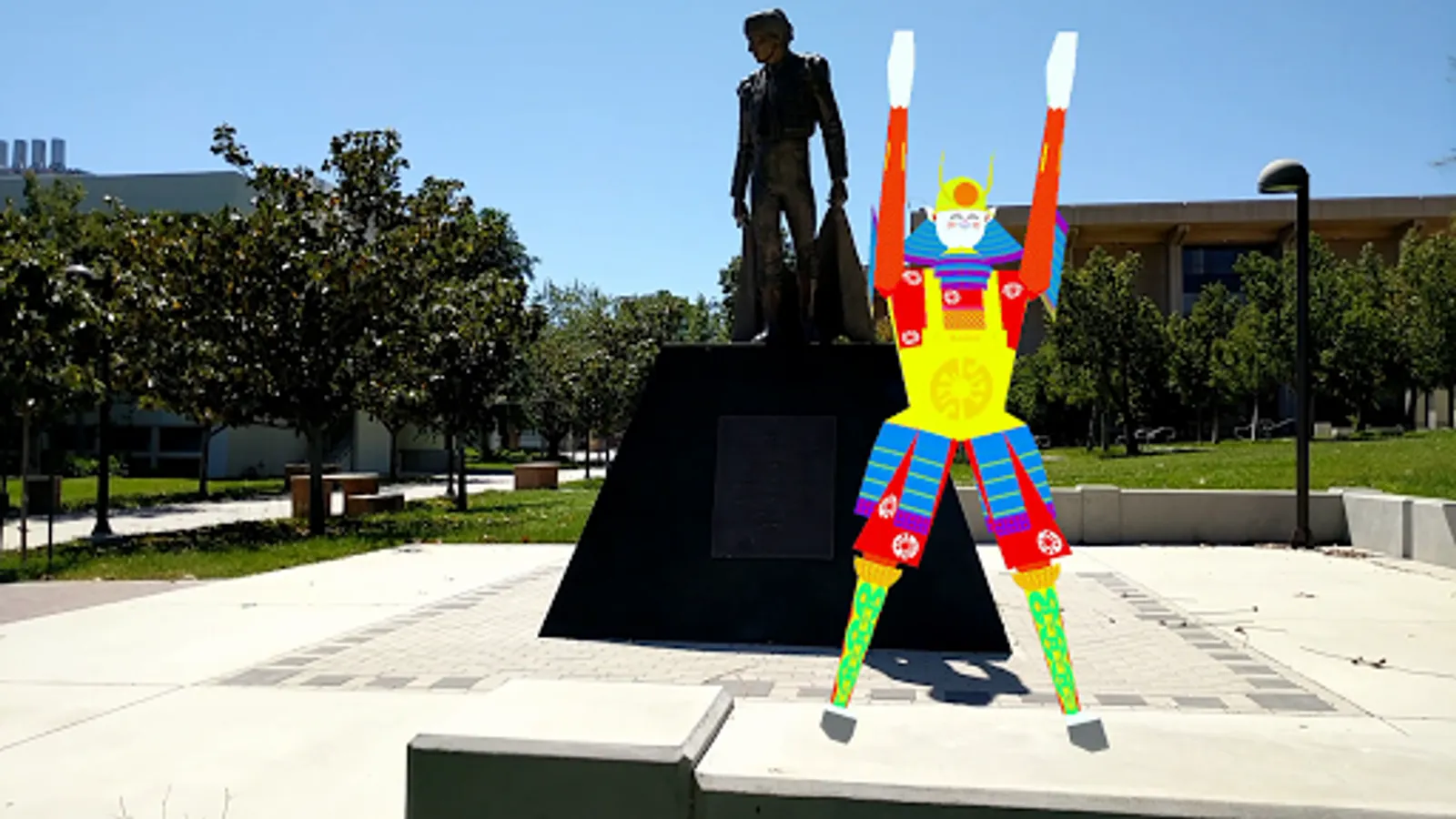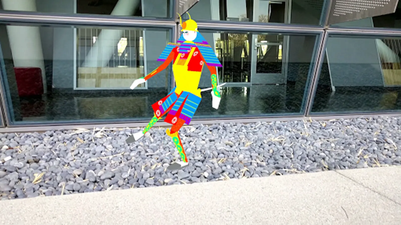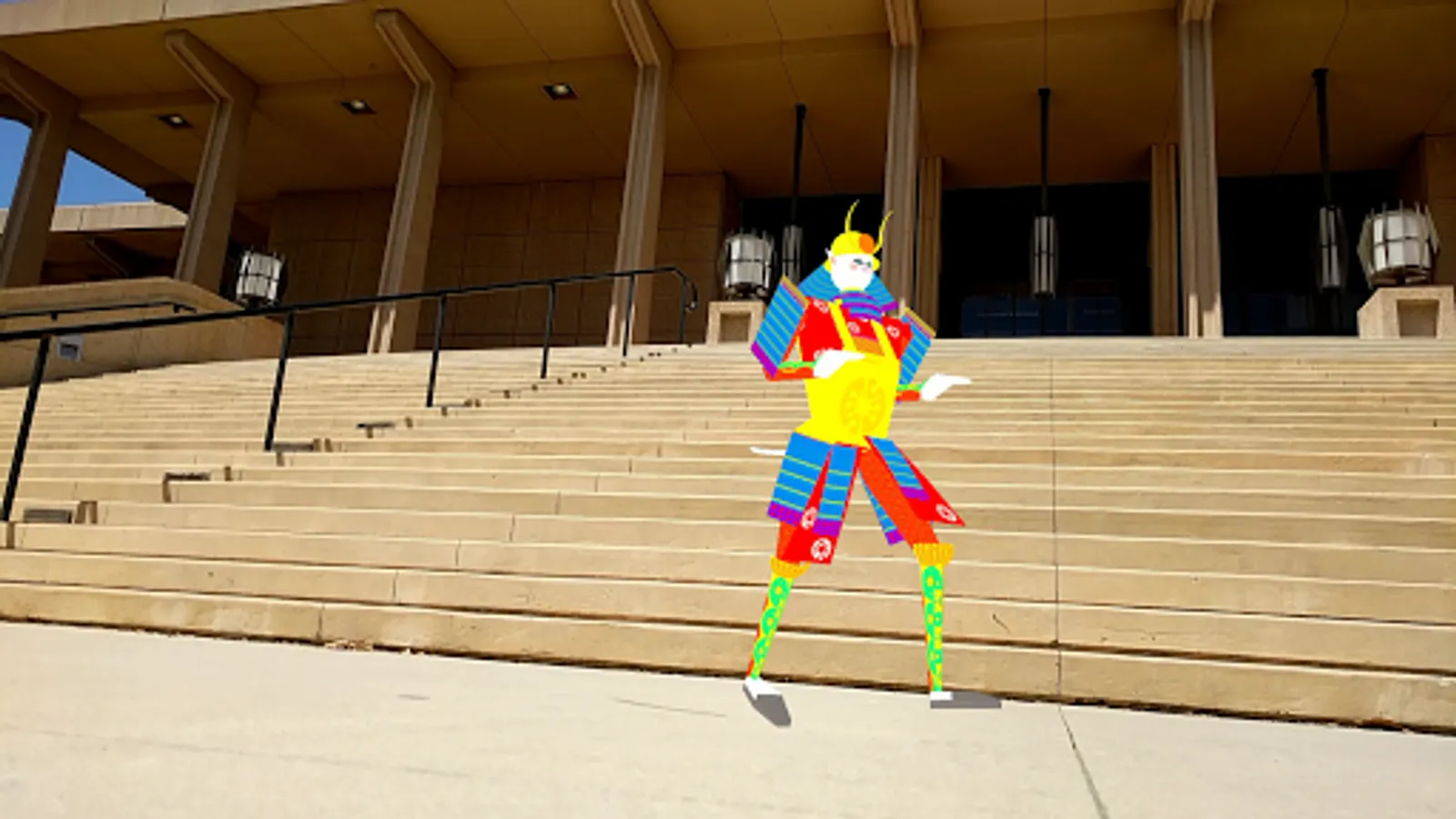 This dance fitness app is an Augumented Reality (AR) animation of Samurai Kitty Robot dancing to the Calabria song. It can be viewed from any angle.
