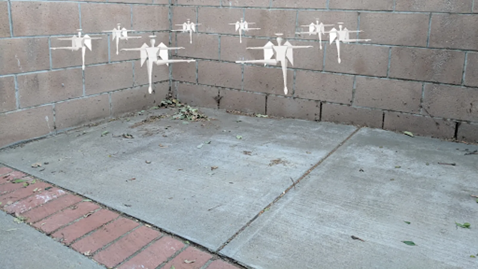 This app is an augumented reality animation. Placing it on surface should be done in a manner similar to other AR-Core apps, that is, circle your device's camera facing a surface and wait for a white grid to show up, then tap the position where you want to anchor it and the animation should start.