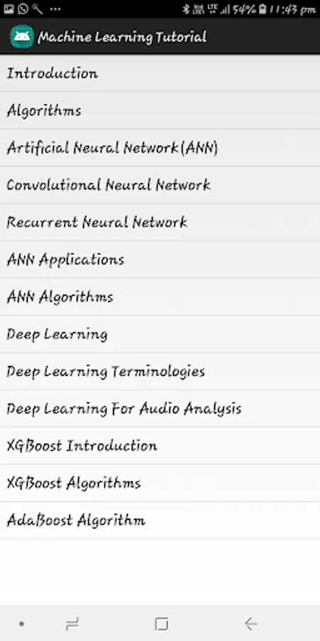 This app contains the basic topics of machine learning...All the basic topics which are required to create a base for the machine learning and artificial intelligence.
