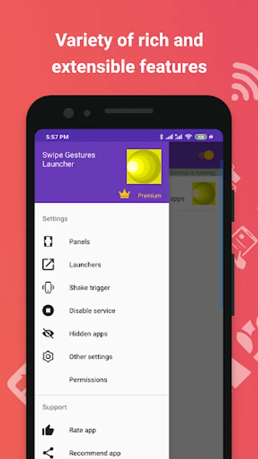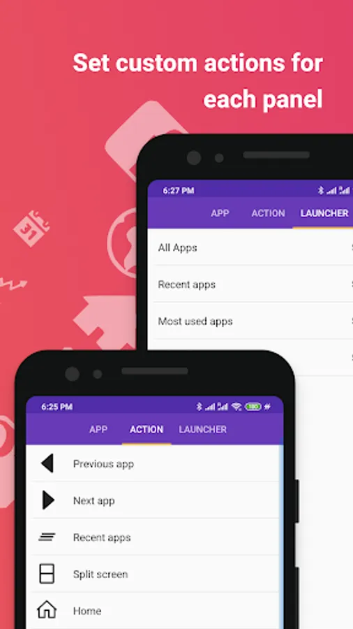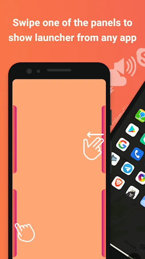 To use it swipe side panels from any app to instantly open the menu which keeps apps you need: Your recent apps, most used apps or a custom set of apps. You fully customize those panels: look, color, opacity.
