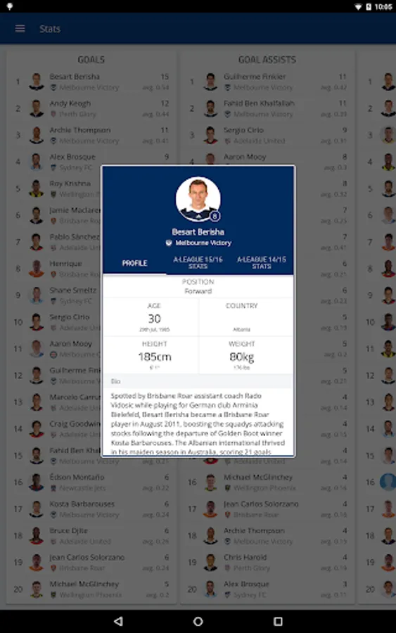 Follow the progress of your club and your favourite players throughout the A-League season.