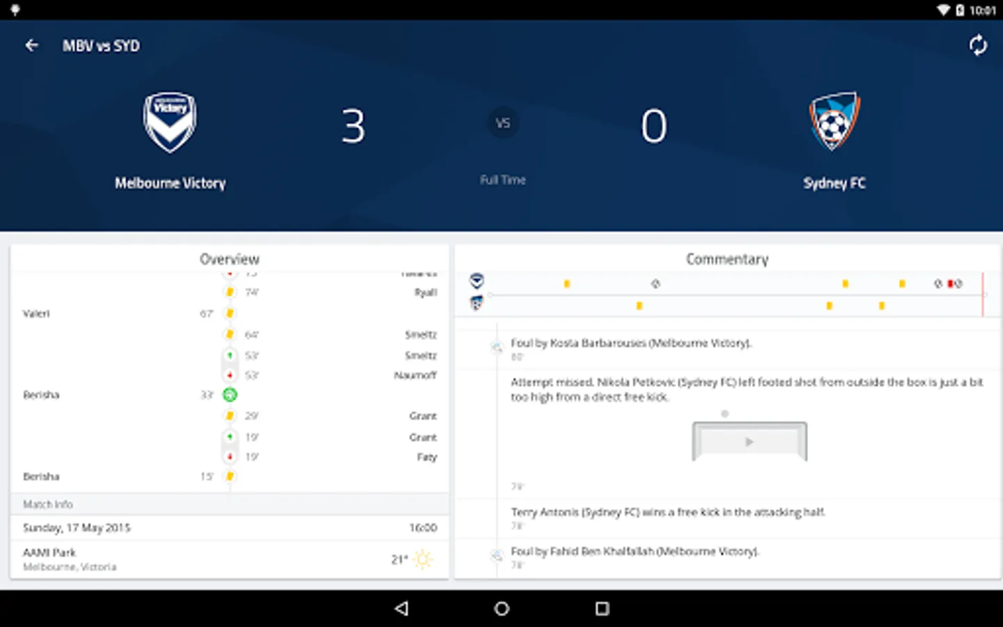 A-League Live by Sportsmate is available FREE for all football enthusiasts around the world. Don’t miss a minute, download now and start tracking live football scores today!