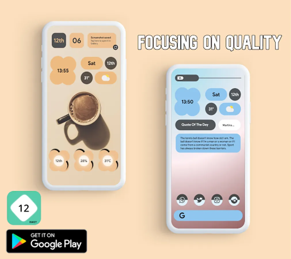 This has the Best Android 12 Widgets due to its incredible design, options, a lot of android 12 widgets as well as having the best quality of Android 12 Widgets! 🔥