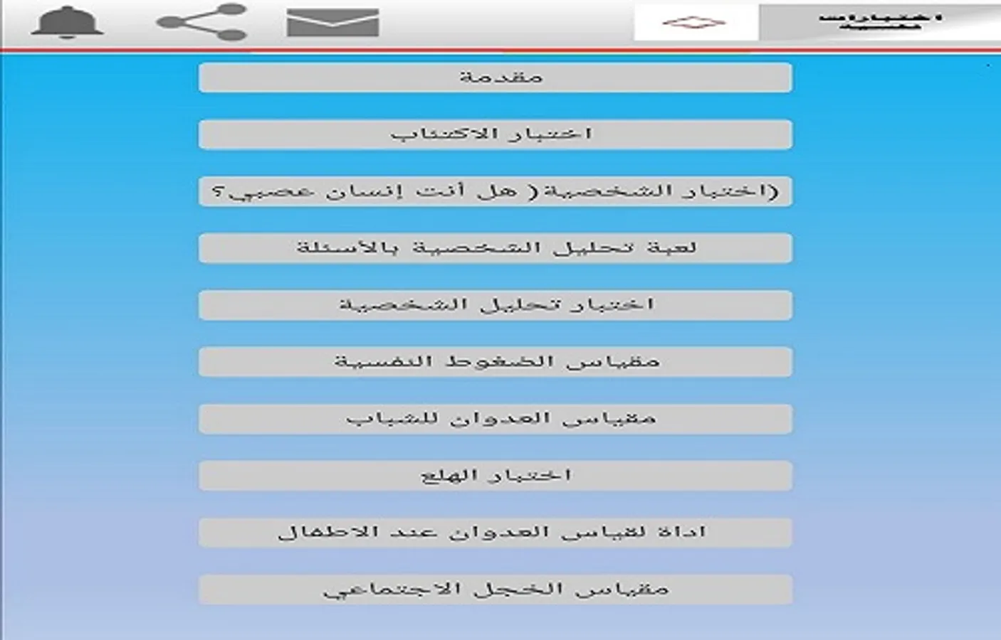 A set of psychological tests with a correction key and are corrected in an automatic way to indicate the degree of the problem and the percentage of the problem if you have it