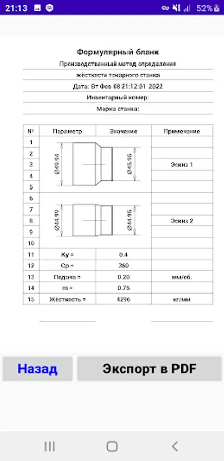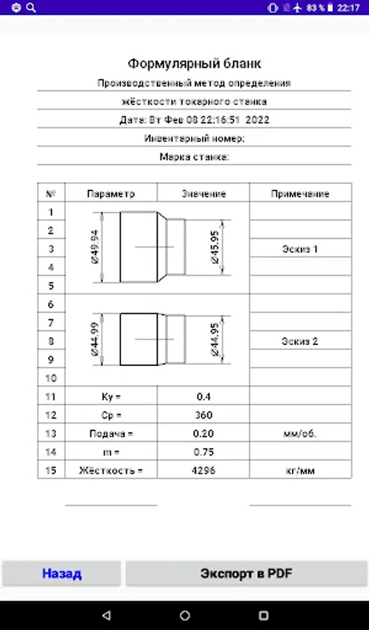 Производственный метод определения жёсткости токарного станка.