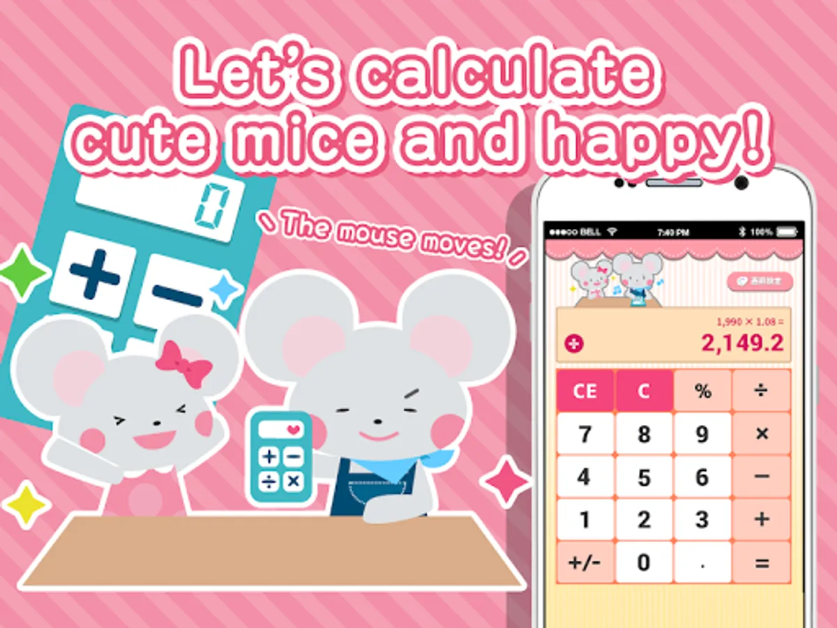 Simple, everyday and easy to use calculation function. It helps calculations when shopping. No matter how difficult calculations it is fun because rats are cute!