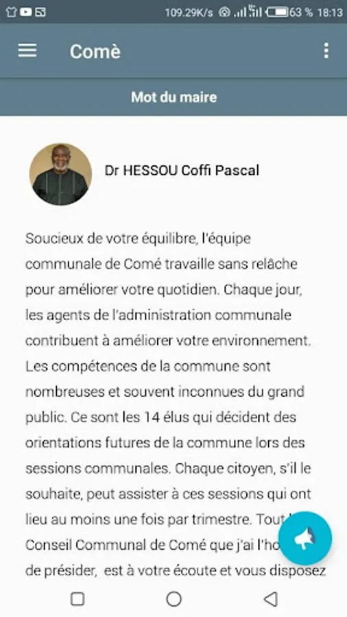 Communes229 is a mobile application that informs citizens about the management of the municipality via menus: communal sessions, accountability, news, documents from the municipality.
