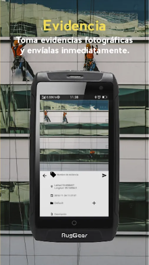 • Generation of photographic evidence with name, date and GPS coordinates.