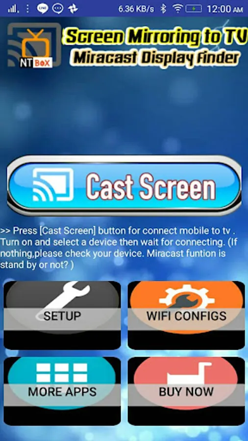 Connecting mobile phone to TV. NTbox help screen Mirroring your live phone screen to TV or Any Display Device which compatible Miracast .This app will help you cast android device screen to TV screen by Wireless display device such as Smart TV or Wireless display adapters.
