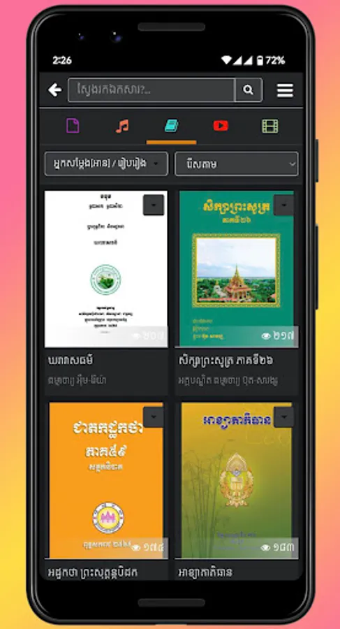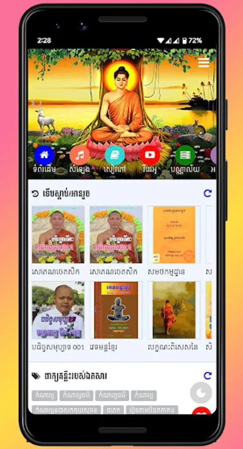 បណ្ណាល័យ ៥០០០ឆ្នាំ បានប្រមូលចងក្រងឯកសារព្រះធម៌ ព្រះពុទ្ធសាសនាជាច្រើន មានជាសំឡេង mp3 របស់ធម្មថិកជាច្រើនរូប និងជាវីដេអូ រួមទាំងសៀវភៅធម៌រាប់ពាន់ក្បាល ជា pdf ។
