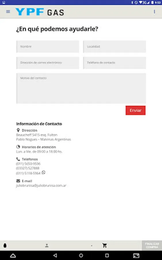 In Julio Bruni S.A. We are dedicated to the sale and distribution of Liquefied Petroleum Gas bottled in carafes and cylinders of up to 45 kg in more than 60 towns in the northern suburbs of the Province of Buenos Aires, currently being the largest Official YPF GAS Distributor in the Region. Among our clients, there are Home Users, Shops, Service Stations, and Industrial Users.