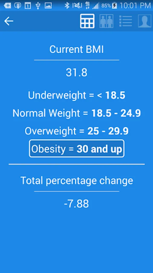 * Check your bmi and percent of weight loss/gain.