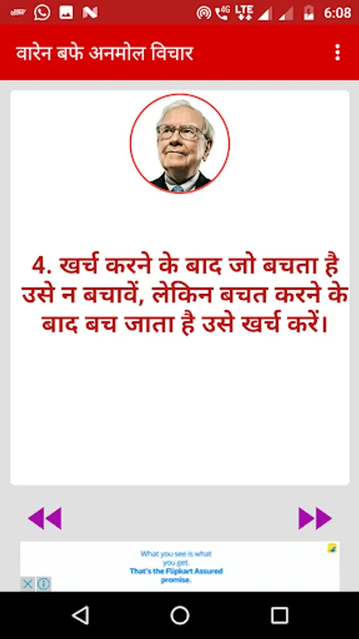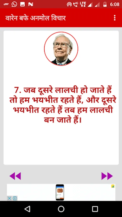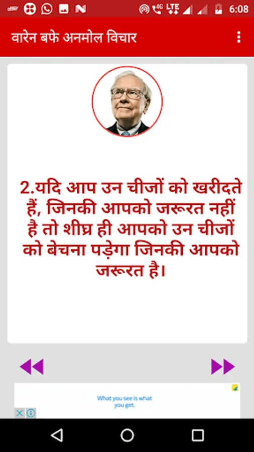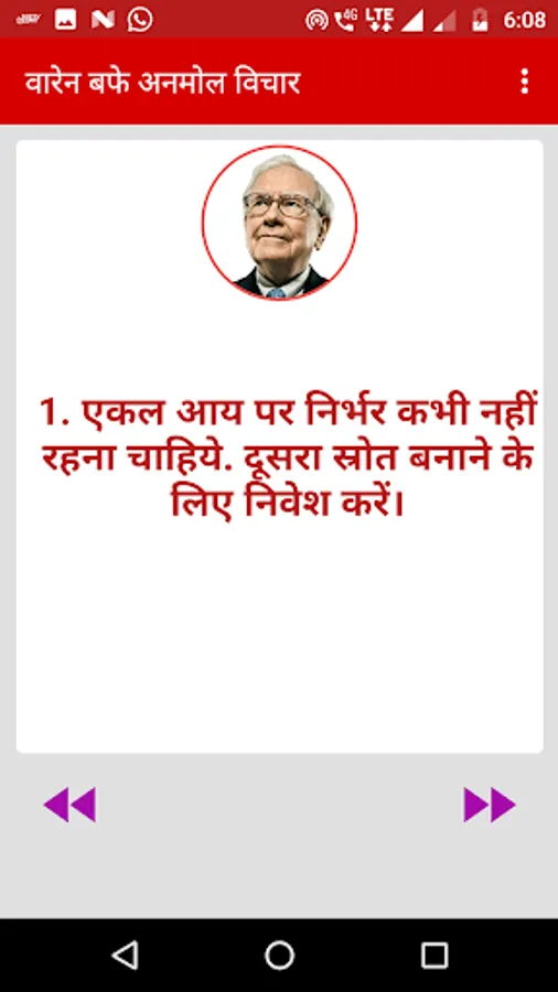 This application contains more than 50 great quotes of warren buffet in Hindi.