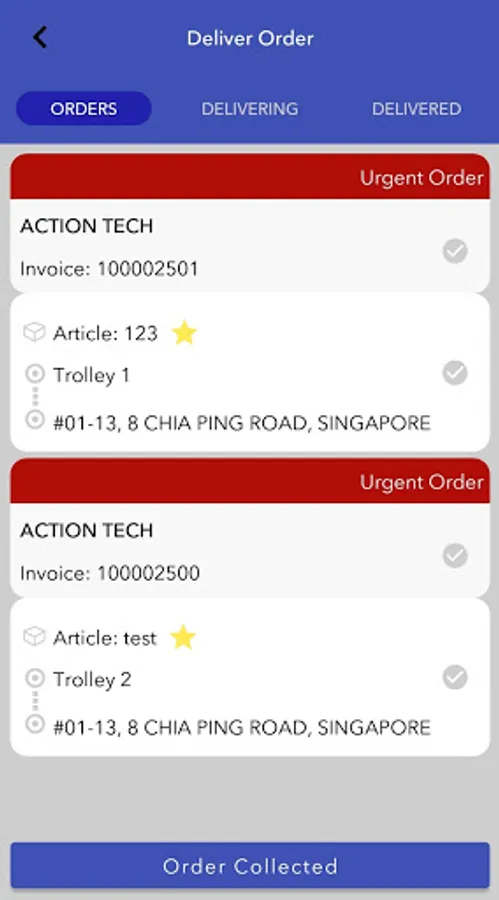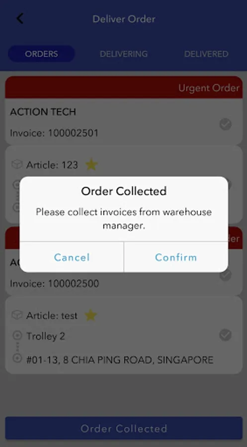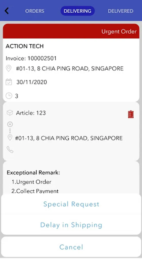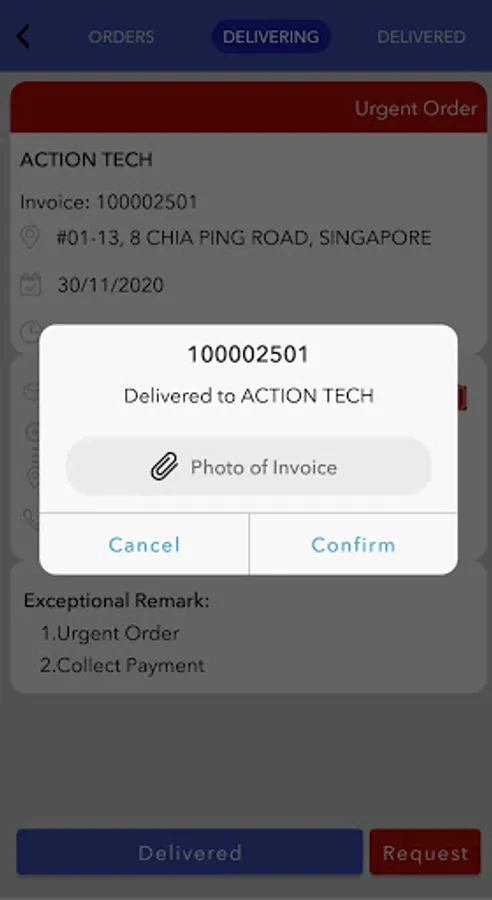 Allows users to see the list of orders to be delivered. Capture delivery remarks and update delivery status in real time.