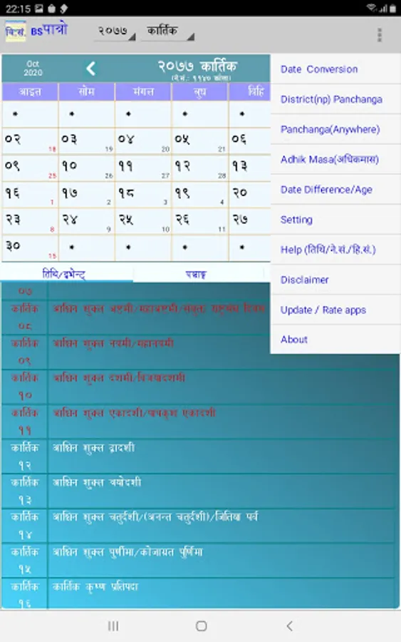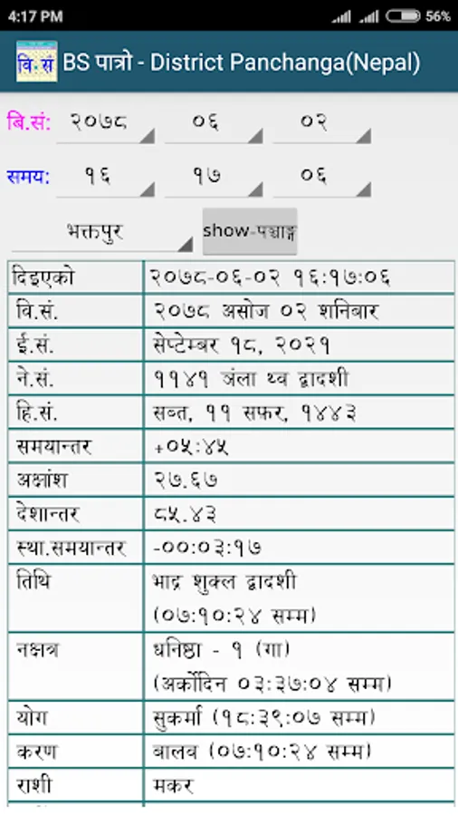 • Panchanga(पञ्चाङ्ग):- Panchanga of your current time and location, Panchanga in any District of Nepal, and panchanga of any location, any time as per your input