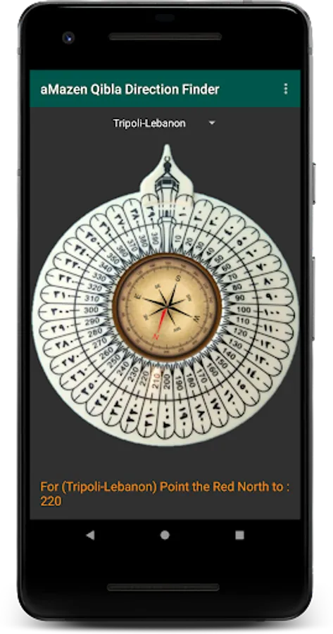 - Easily search and find the location you are at from a list of Locations and point the Magnetic North to the location-specific calculated number on the fixed outer ring
