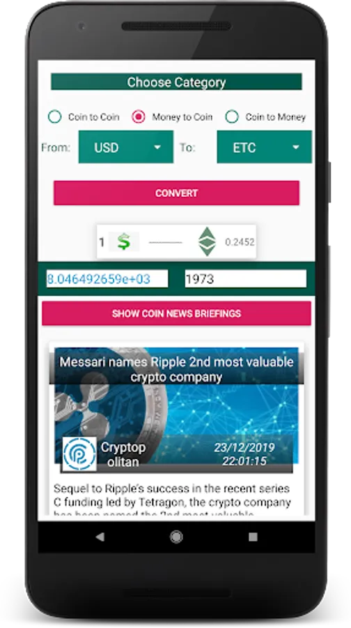 - Convert any amount of the most prominent crypto-currency into another using live values