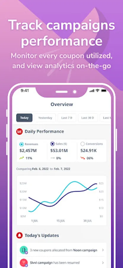 > Track campaigns performance, monitor every coupon utilized, and view analytics