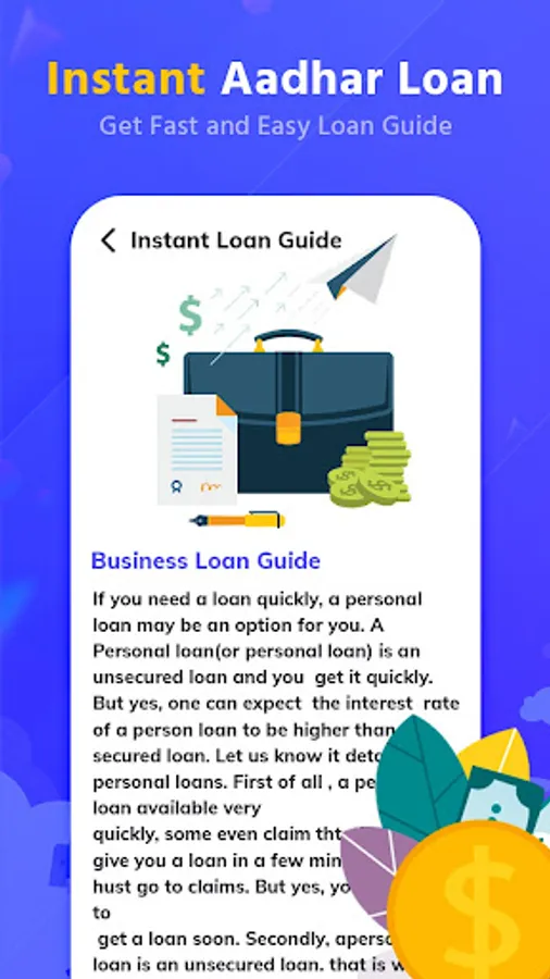 Aadhaar Pe Loan Guide is an informative mobile application, where you can get the latest information about all aadhar card, take loan on aadhar card, and want to known many advantages about aadhar card at any time and place.