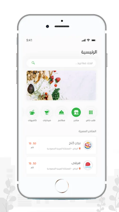 باقة من مختلف المتاجر ومقدمي الخدمات من الأقرب إلى الأبعد مثل المطاعم والتموينات والمخابز والسوبر ماركت وغيرها .