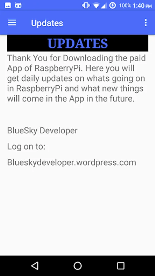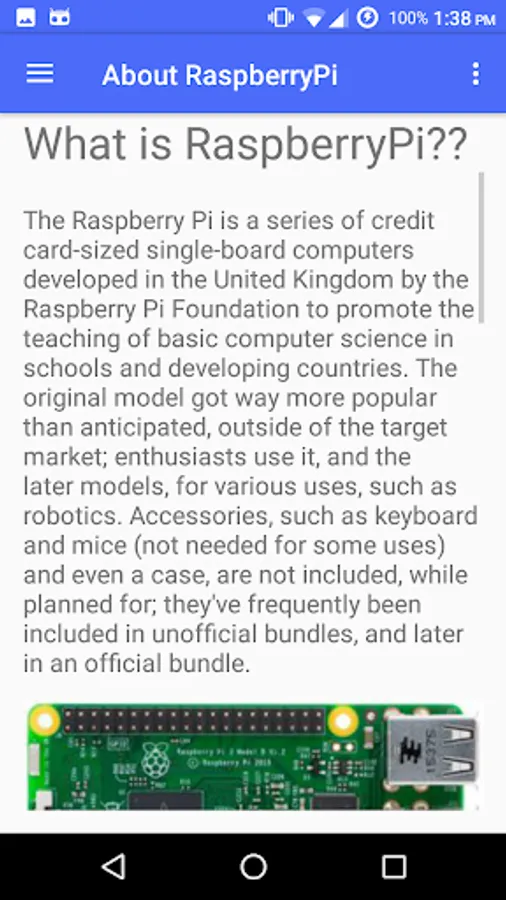 This is an App with all features. Enjoy the user friendly UI with better content and smooth experience. The App has all the features as in the free App with added new content like Summer Project Ideas and daily RaspberryPi Updates.