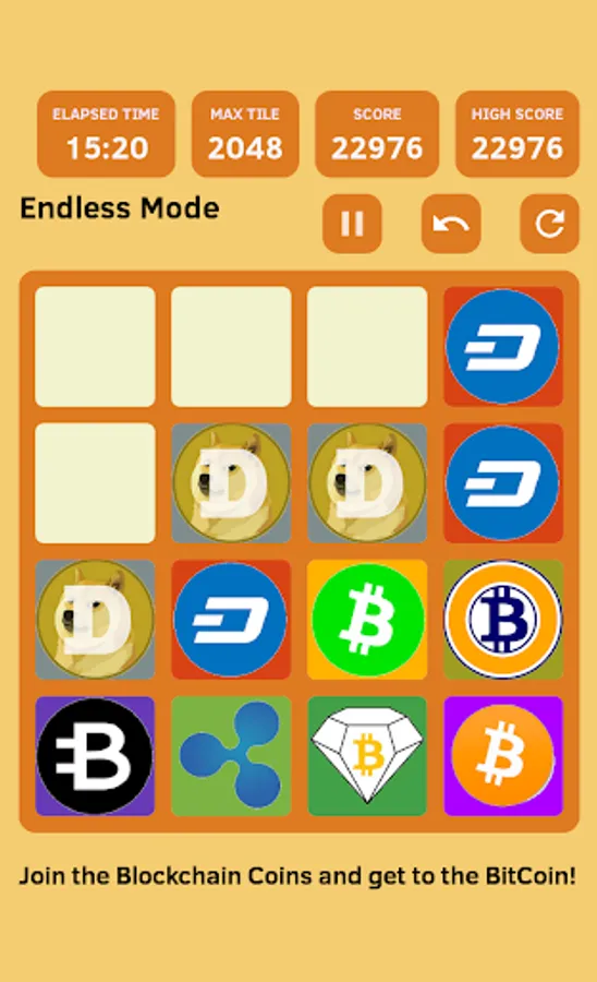 Swipe 4 directions (Left, Right, Up, Down) to move tiles and when two tiles with the same cryptocurrency touch, they merge into one! Try to reach the Bitcoin tile by joining the tiles.