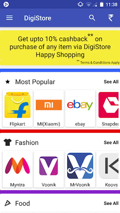 Digistore also helps to rid your phone of the bulky applications that eat up all your phone storage, with Digistore, storage hassle, no more! Just download our application and get access to all leading online retailers like Flipkart, Amazon, Snapdeal, Shopclues, Jabong etc.