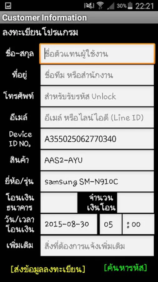 1. In case of never registered It is the first time activation, press OK without entering any code to access the registration page. Then fill in all personal information and press "Submit registration information" after the officer examines the information. You will receive an unlock code or an Unlock Code immediately, no more than 1 business day.