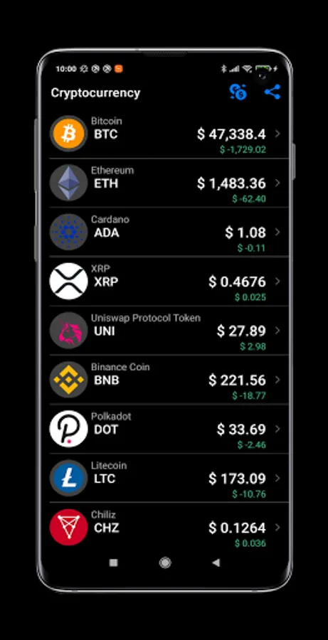 Bitcoin, Ethereum, Litecoin, Ripple, Cardano, Binance Coin, Terra, Chainlink, Solana, Polkadot, Dogecoin, Shiba Inu and many others